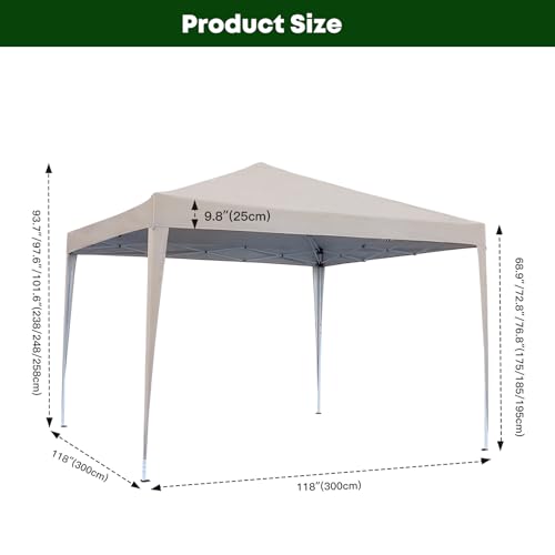 - SPACIOUS COVERAGE: 3×3 metre pop-up gazebo provides 9 square metres of sheltered space, with adjustable legs offering 3 height options and a peak height of 101 inches (258cm) for versatile outdoor use