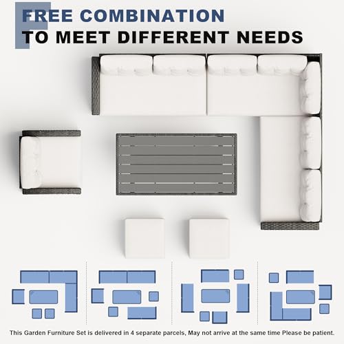 - 【9-Piece Rattan Conversation Set】This patio rattan conversation set includes a 6-seat corner sofa, 2 footstools and 1 armchair—ideal for family dinners, BBQs and relaxed evenings. Modular pieces can be arranged together or separately to suit your garden, patio or conservatory.