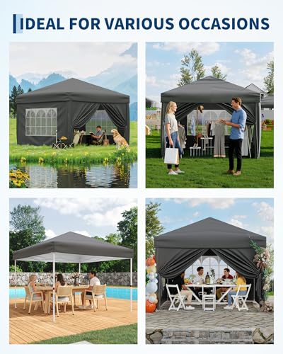 - Complete Accessories Kit: This all-in-one portable set includes 1 sturdy folding frame, 1 canopy top, 4 sidewalls, 4 wind ropes, 4 ground stakes, 4 sandbags and a practical wheeled carry bag. Everything you need for easy transport, storage and stable installation is included.