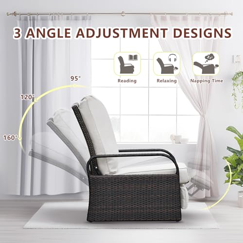 - 【Sturdy Aluminum Frame &Hand-woven wicker】Garden recliner chairs constructed with rustless and weather resistant aluminum material, and wrapped in elegant hand-woven wicker with High-Density Polyethylene (HDPE),3000 hours UV resistant, prevent fading and cracking issues caused by sunlight,water,oil,sweat