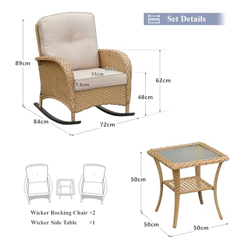 - 【Durable All-weather Construction】The garden table and chairs are constructed with a robust powder-coated metal frame, designed to withstand various weather conditions over time without rusting.The 8cm super thick cushions are made from soft sponge and are encased in waterproof, zippered covers that are easily removable for cleaning