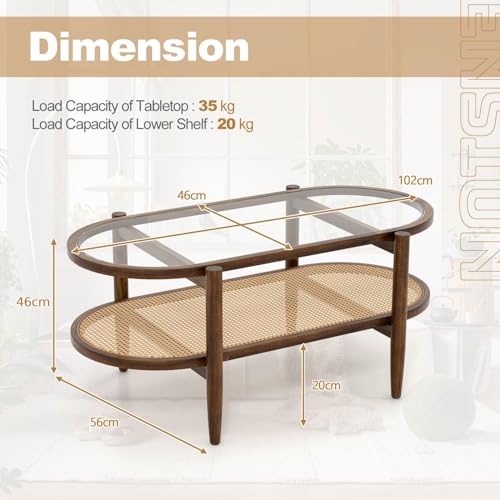 - ❤UNIQUE & ELEGANT DESIGN: With its oval-shaped design and rustic style, this center table adds a touch of unique charm and naturalness to any living space. The combination of the tempered glass tabletop with smooth round corners and the elegant PE rattan shelf enhance the overall aesthetic appeal of the furniture piece.