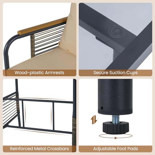 - 【Comfortable Seating】Equipped with soft and thick cushions, this patio furniture set provides exceptional comfort, allowing you to relax for hours. Plus, the seat cushion covers are removable for easy cleaning.