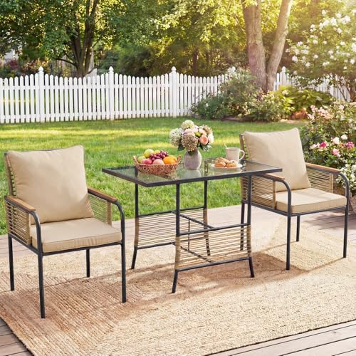 - 【Premium PE Wicker】Crafted with sun-protective PE wicker, this outdoor bistro set ensures long-lasting durability. Moreover, the hand-woven texture adds an elegant and stylish touch to your outdoor settings.