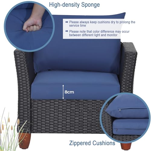 - 【Ergonomic Sofas with Thick Cushion】2 single sofas with wide backrest and armrest will relax your body and relieve the fatigue of the day. And our rattan furniture set comes with 2 seat cushions and 2 back cushions, which are filled with 8cm thick and high-resilient sponge for providing ultimate comfort. Each cover of cushion has zipper for removing and cleaning easily.