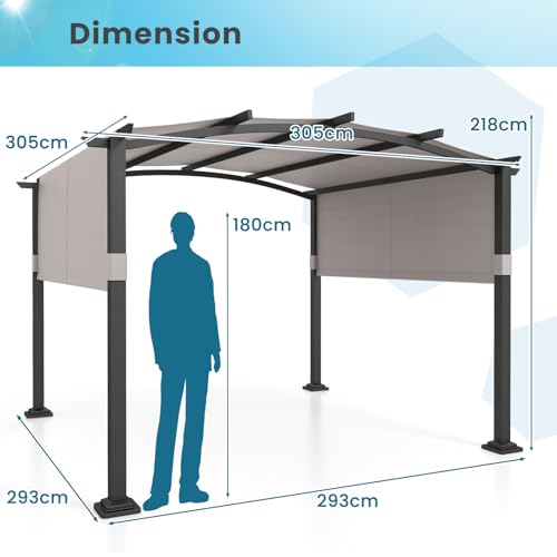 - 【Spacious Sunshade Area】This outdoor pergola measures 305 x 305 x 218 cm (L x W x H), provides ample shade for a complete outdoor dining set or wicker sofa set. It is ideal for family gatherings, social events with friends, or even used as an outdoor grilling gazebo.