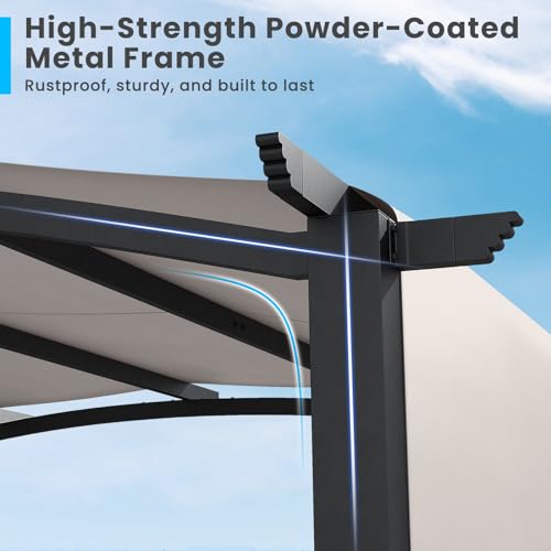 - 【Sturdy & Stable Construction】The outdoor pergola is supported by a high-strength powder-coated metal frame, which is rustproof, sturdy, and built to last. Moreover, it features anchoring plates with pre-drilled holes, allowing for secure placement on the soft ground.