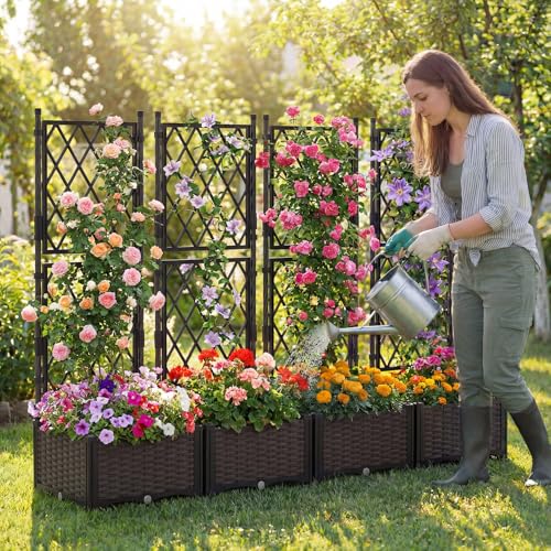 - 【Sturdy and Reliable Construction】 The trellises are constructed of rustproof PE-coated metal tubes, designed to withstand high temperatures and resist weather damage, complete with corrugated design to enhance friction, helping plants climb easily. The planter boxes are crafted from robust PP panels that resist cracking and fading, ensuring long-lasting performance.