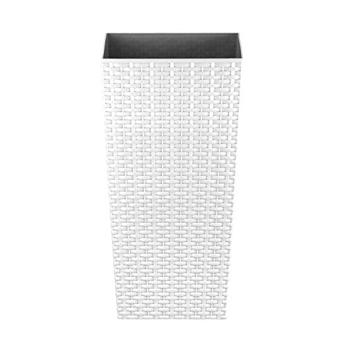 CrazyGadget Tall Square Plastic Rattan Indoor/Outdoor Planters, Set of 2, White, 17 Litre