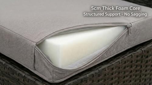 - 5CM THICK FOAM FILLED SUPPORT: High-quality foam filled seat pads provide structured comfort and long-lasting support. Unlike hollow fibre cushions, these rattan replacement cushions maintain their shape and resist flattening.