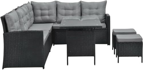 - Enjoy at your leisure: One three seater, one two seater, one corner unit, two footstools and one dining table, you’ll never want to sit indoors again. The Evre Monroe can be used with or without the dining table for you to enjoy day after day. This set is perfect for eating all of your meals, putting your feet up with a good book, or even working from home you and your family will struggle to not find something it’s perfect for