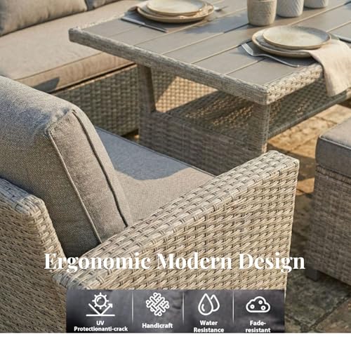 - [THICK COMFORT CUSHIONS]: Enjoy superior comfort with deep-filled 8cm seat cushions and supportive 6cm back cushions. Weather-resistant polyester covers provide everyday practicality while maintaining a soft, premium seating experience.