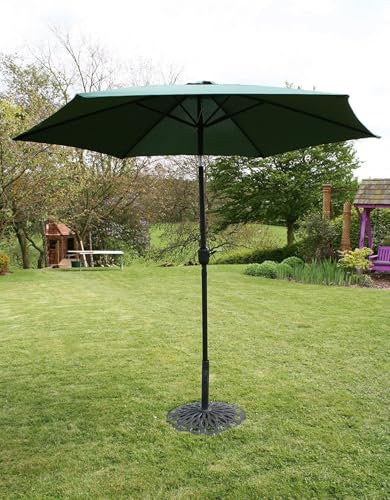 A parasol umbrella from Garden Haven (registered trademark UK00003164611) Parasol canopy span of 2.7 metres, pole diameter 40mm Tilt function for varying amount and direction of shade Crank to raise and lower the canopy Base not included