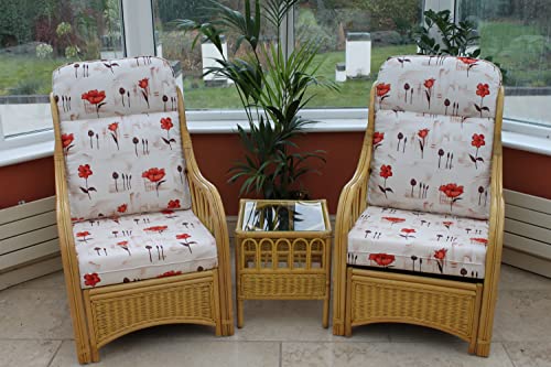 - A set of 2 chairs complete with poppy pattern cushions and a side table, CUSHIONS ALSO AVAILABLE IN CREAM, COFFEE, PALM AND STRIPE UNDER SEPERATE LISTINGS