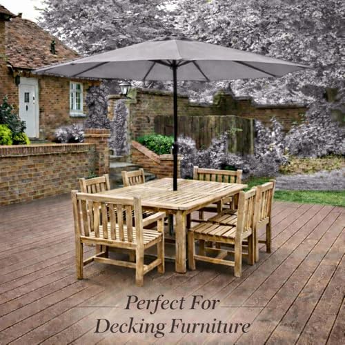 - MADE TO LAST: With its tough polyester fabric, UV and waterproof coating, 8 strut strong steel ribs 12 x 18mm for extra support, lightweight two-section easy fix steel umbrella poles, overwind protection crank handle and protection cover you can be sure everything has been covered off so you can enjoy years of trouble-free relaxing in your garden.