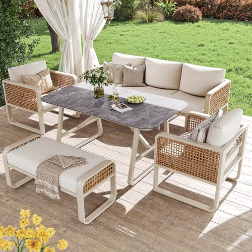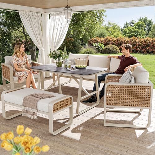 - Enable comfort and durability: Each armchair and three-seater supports 150kg with thick foam cushions and breathable covers, ideal for patio sofa arrangements and family gatherings.