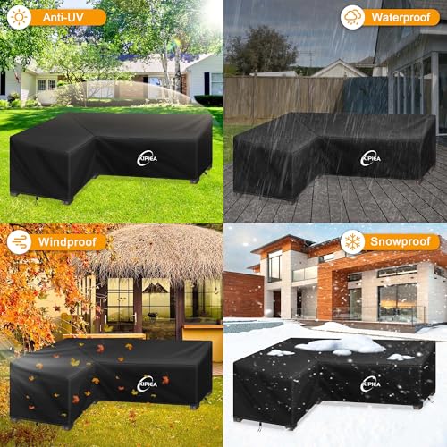 - 【Kipiea L Shaped Garden Furniture Covers】Would you like to protect your precious patio corner sofa from the elements with a high-quality cover? Kipiea garden sofa covers waterproof feature a double-layer PU waterproof coating on higher-density 420D fabric and quality waterproof tape at the seams to ensure the cover withstands up to 200,000+ Pa water pressure and keeps your furniture dry even after 2 years of use