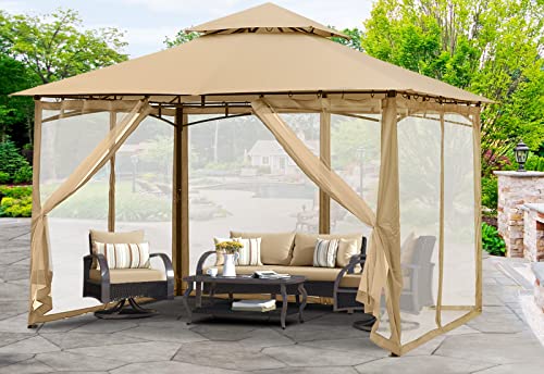 - 🔹4 Netting Walls: Features 4 Removable zippered screen nets. Protect you from the sun and rain as well as flying insects, while still having full airflow and visibility. Velcro straps allowing you to adjust the mosquito nets or corner curtains coverage to fit your needs, beautiful and practical, hope you enjoy the great outdoor time from your private gazebo.