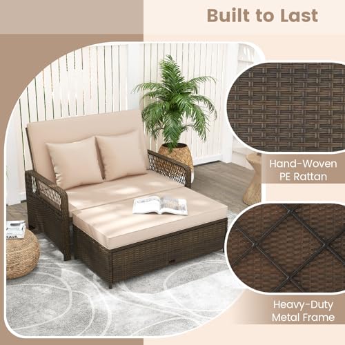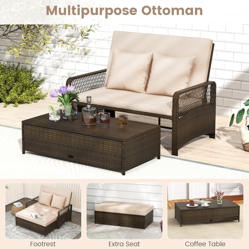 - Multifunctional 3-In-1 Design: Experience the ultimate in versatility with this patio wicker daybed that effortlessly transforms from a loveseat sofa to a daybed or a patio sofa & coffee table set. Perfect for lounging or hosting guests, this furniture adapts to your needs with seamless elegance and functionality.