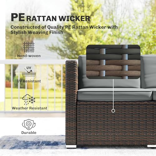 - All-weather durability: Built with a rust-resistant galvanised steel frame and PE rattan, this garden sofa set resists fading and cracking in sun or rain, ensuring years of maintenance-free, stylish outdoor use