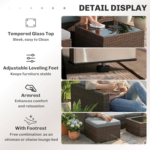 - Versatile modular layout: This rattan garden furniture includes a 3-seat sofa, mobile ottoman & coffee table. Easily switch from an L-shaped rattan corner sofa to a relaxing outdoor daybed for naps, suitable for your garden, patio, or porch lounging