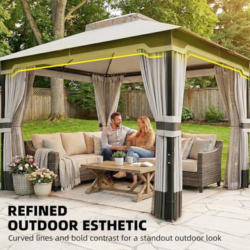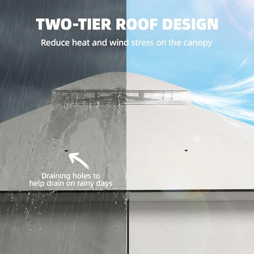 - Ventilated double-tier roof: Stay cool and comfortable with our innovative double-tier polyester roof garden gazebo, designed with built-in netting for enhanced protection from unwanted guests. Colour blocking design and curved top makes it more beautiful