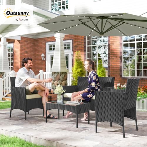 - Four-piece garden sofa set: Transform your garden with this stylish outdoor furniture set featuring two cosy armchairs, a spacious loveseat and a chic coffee table. Great for relaxing or entertaining, create your wanted layout to suit any occasion