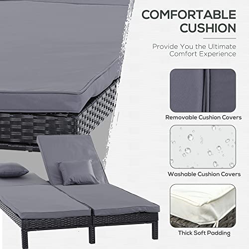 - INNOVATIVE 2-IN-1 DESIGNED: The 2-person rattan sun loungers will be perfect for relaxing near poolside, patio, holiday resort during your leisure time. Wide-sized chairs with 2 removable cushions of the garden daybed for added enjoyment.