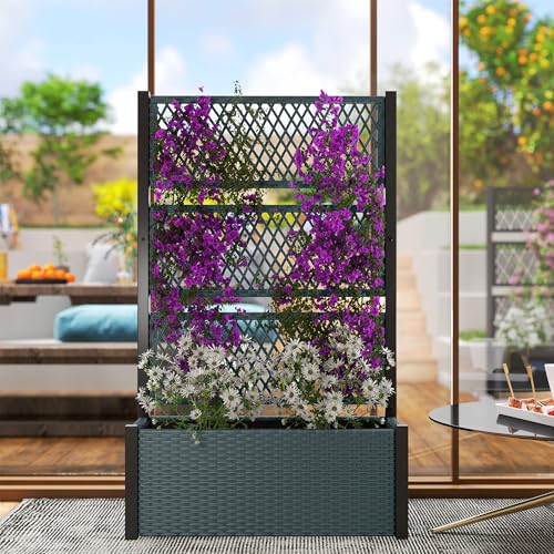 - 2-in-1 design: Bottom raised planter and three-part back trellis. Support for climbing plants, with the spacious bottom box offering planting room for all other plants, flowers and more.