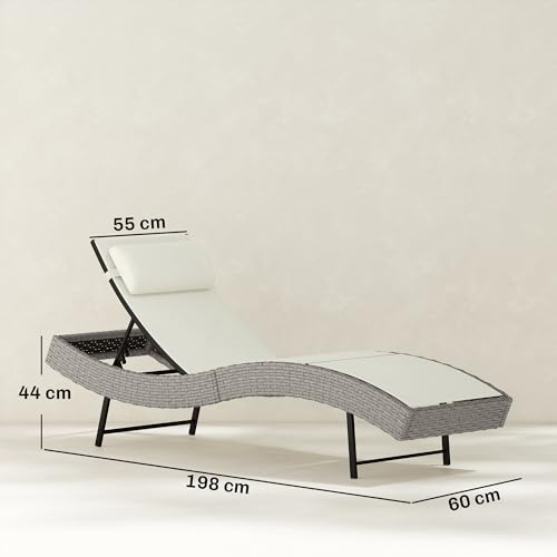 - Ergonomic S-curve design: Follows your natural body curve, offering balanced support from back to legs. This rattan sun lounger features a headrest for added neck support when sunbathing, reading, or simply relaxing