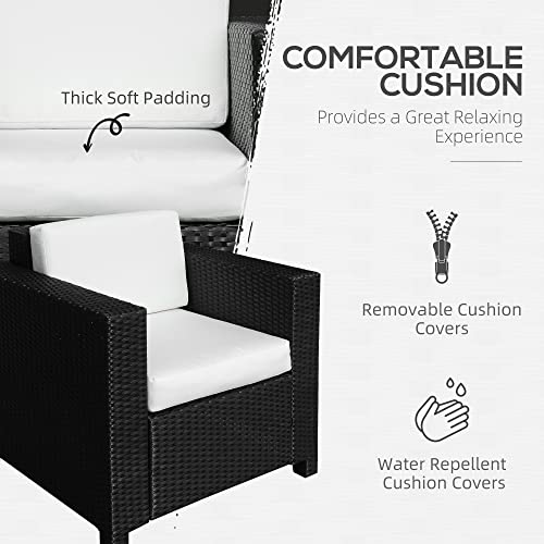 Outsunny Single Seater Rattan Chair, PE Wicker Garden Armchair with 10 cm Thickened Cushion, All-Weather Rattan Garden Chair with Armrests, Black/Cream White