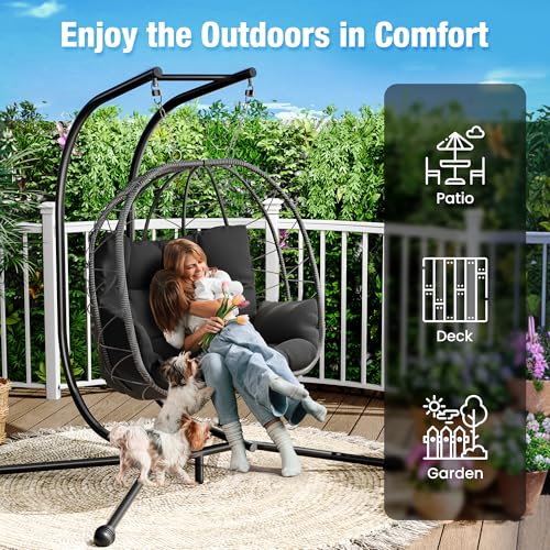 - 【All-Weather Handwoven PE Rattan】Crafted from high-quality PE rattan, this 2 seater egg chair swing is waterproof and UV-resistant, maintaining its beauty and functionality through all seasons. Perfect for both outdoor and indoor use