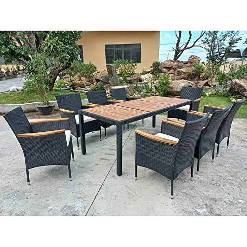 - 【Sturdy and Durable】 Our patio furniture set is made of durable rattan weave material which is UV treated and fade resistant; The table top and chair armrest was made of solid acacia wood; Solid steel frame improve stability, which is strong enough to withstand all-weather