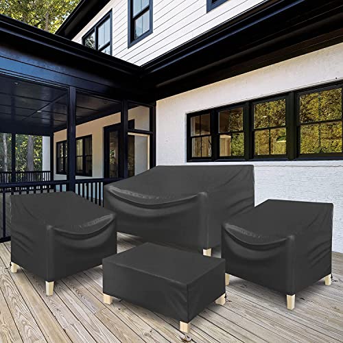- Upgraded Waterproof Material: Made of 420D upgraded PU-lined oxford fabric, our Garden Furniture Set covers withstand water pressure of up to 10,000 MPa. More waterproof, breathable, thicker, and more durable compared with 210D material. All seams are double protected by rubber strips and stitching, protecting your furniture from rain, snow, frost, sun, wind, dust, and other bad weather, not easy to be torn.