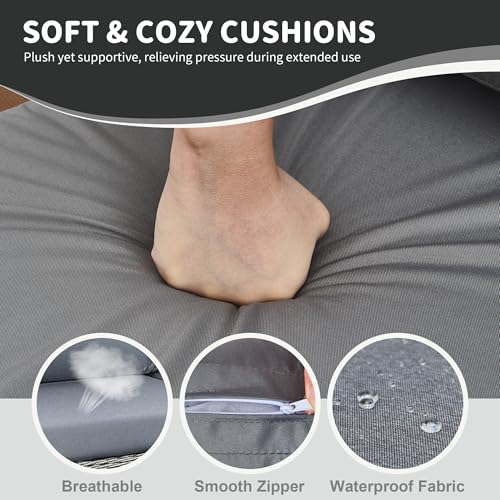 - All-Weather Durability: Patio furniture set Constructed from premium PE rattan, this outdoor furniture is corrosion-proof, UV-resistant, and scratch-resistant, ensuring lasting beauty and performance in any outdoor setting. The sturdy frame is made from rust-proof aluminum, providing a reliable foundation that withstands the elements