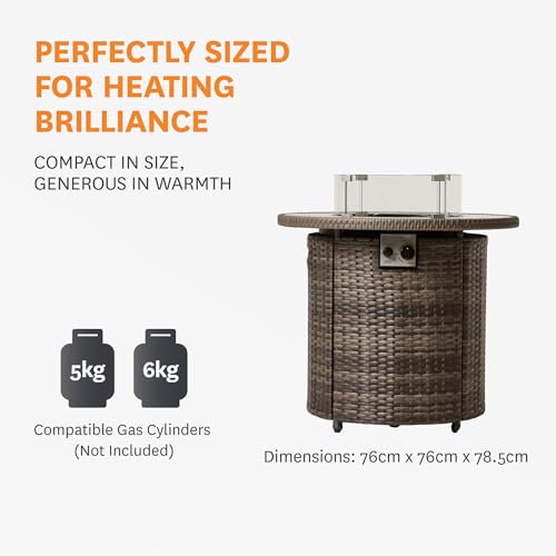 - EFFORTLESSLY STYLISH – The stunning rattan material will add a stylish feel to your outside setting. It has an easy push-button ignition and is compatible with 5kg and 6kg patio/leisure gas cylinders. Gas not included