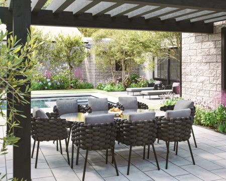Selene Rope Weave 8 Seater Outdoor Dining Set Selene Rope Weave 8 Seater Dining Set The Selene collection offers a bold, contemporary look with a touch of luxury Mediterranean style. This luxurious 8 seater outdoor dining set combines a premium soft-rope weave with a strong aluminium frame. Designed to stand out and stand the test of time. Our aluminium garden furniture is lightweight but sturdy. Water resistance, anti-rust coating, superior foam-filled cushions and tempered glass come as standard. The combination of the chunky padded rope weave and the striking aluminium frame makes this a stand-out piece for a modern home. Entertain guests for hours into the evening as the double-foam-filled seats provide support and comfort. Available in the collection is a choice of sofa, armchair, corner sofa and dining set. Features This contemporary outdoor furniture collection has been uniquely crafted with a new style of thick rope weave thatâs soft to the touch. Thick, highly comfortable cushions and woven arms bring additional comfort to this range. The frame is made from a strong and robust aluminium, frame. All cushions boast good longevity as theyâve been weatherproofed. What’s Included 8 x Dining Chairs in Grey1 x Tempered Glass Table in Graphite1 x Protective Outdoor Cover
