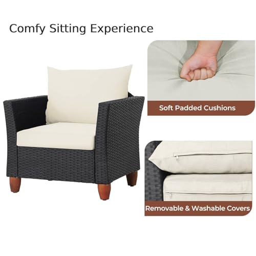 - ▶EASY TO ASSEMBLY & CLEANING: With all the necessary accessories and clear instructions, this patio rattan sofa set makes assembly a breeze. Additionally, non-woven cushions with zipper can be easily detached for cleaning or just be wiped clean with a damp cloth.