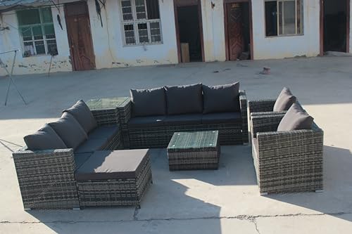 - 【8 Seater Patio Set】: Made of premium material with a universal design and available in two colours, the 8 Seater Patio Set (2x 3-seater sofa:181x64x66cm;2xSingleSofa:72x64x66cm;1xCoffeetable:65x65x34cm;1x Side table: 65x65x66cm (without storage);1x footrest: 65x65x34cm) will suit all type of outdoor environments. Create a natural and stylish spot in your garden or patio to enjoy and relax on sunny days.