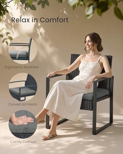 - A Comfortable Spot: The 5 cm thick foam and ergonomically designed backrest that adapts perfectly to your body are just waiting for you to plop down. Soothe your body and recharge your energy with this comfy patio furniture set!