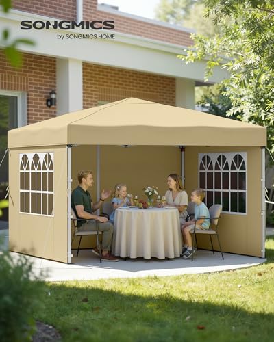 - With Side Panels for Privacy & Shelter: The side panels on this pop-up gazebo can be attached as needed or tied back to the sides. The fixed window sections let daylight in and give you a clear view out. *Windows don’t open