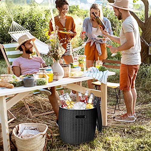 - Pretty Rattan Look: The ice bucket has a rattan look, suitable for various outdoor activities, such as pool parties, barbecues and family celebrations. This bar table combines functionality and optics in one and fits perfectly with other outdoor furniture.