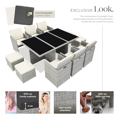 - UNMATCHED COMFORT: Experience the perfect blend of style and comfort with soft, 5 cm thick, removable seat cushions. Experience comfort like never before as you lounge outdoors. Plus, we offer two sets of cushion covers in beige and grey to suit your style for your dining chair. Elevate your gatherings with this combination of comfort and chic design, creating moments to cherish.