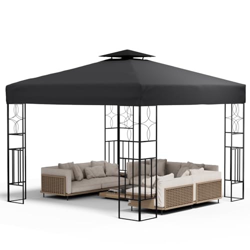 - 【Double-tier Roof】 This 3x3m gazebos designed with double tiered roof, can maintain air circulation in a closed environment, and 4 pillars with carved patterns make it looks elegant and beautiful.