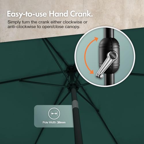- STYLISH & EASY TO USE: The VonHaus garden parasol features a chic dark green 2m canopy, perfect for gardens, patios, or decking. The hand crank allows for effortless opening and closing – no more fiddly pulley cords!
