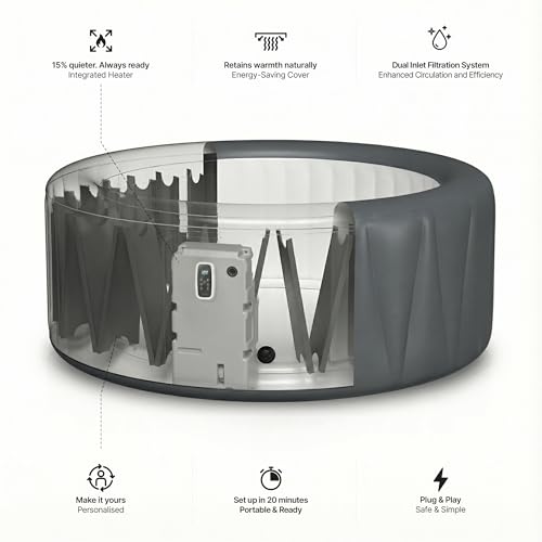 - RAPID & ENERGY-EFFICIENT HEATING: Featuring a 40°C rapid heating system, this spa reaches your desired temperature quickly while energy-efficient insulation helps retain heat and reduce costs.