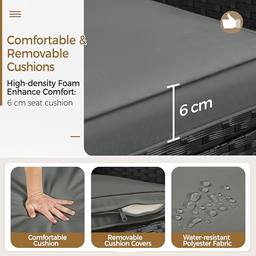 • Padded Cushion with Ultimate Comfort: The seat is padded with high-density foam, offering excellent elasticity and softness that resist deformation, providing a cozy seating experience. The water-resistant cushion covers with zippers are removable, making cleaning effortless