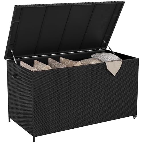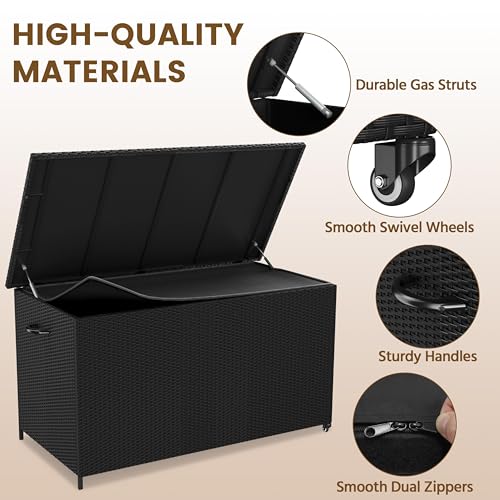 - Smooth, Safe Lid Access: Enjoy easy, secure storage with this PE rattan deck box featuring buffered rods for smooth lid movement. Whether reaching for pool accessories, garden tools, or patio cushions, the safe, slow-close design adds convenience to your outdoor routine