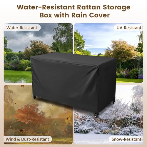- Versatile Use: This rolling garden storage box with a metal frame wrapped in PE rattan holds 160 kg on the top lid and 40 kg inside. Store cushions, blankets, or tools, and use the sturdy lid as a temporary side table with a decorative cloth for drinks, books, or small gatherings