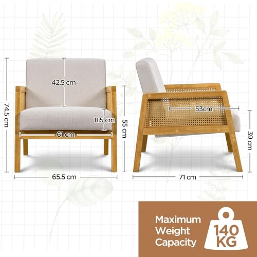 - Cane Paneled Armrests: What makes this accent chair unique is that we adopt handcrafted cane webbing to form beautiful woven arms. It is 100% natural and safe for your health. The natural hue and stylish texture add warmth and openness to your home or office